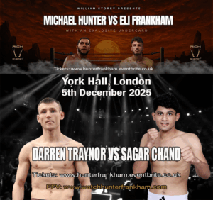In just seven days time, on Friday the 5th December 2025, Aberdeen’s Darren ‘Trayn-Wreck’ Traynor (17-4-0) steps into the ring at the iconic York Hall in London’s East End to face Chandigarh, India’s #2 ranked Sagar Chand (6-1-0) on the undercard of the intriguing showdown between between American #1 and World #10 ranked Heavyweight Michael […]
