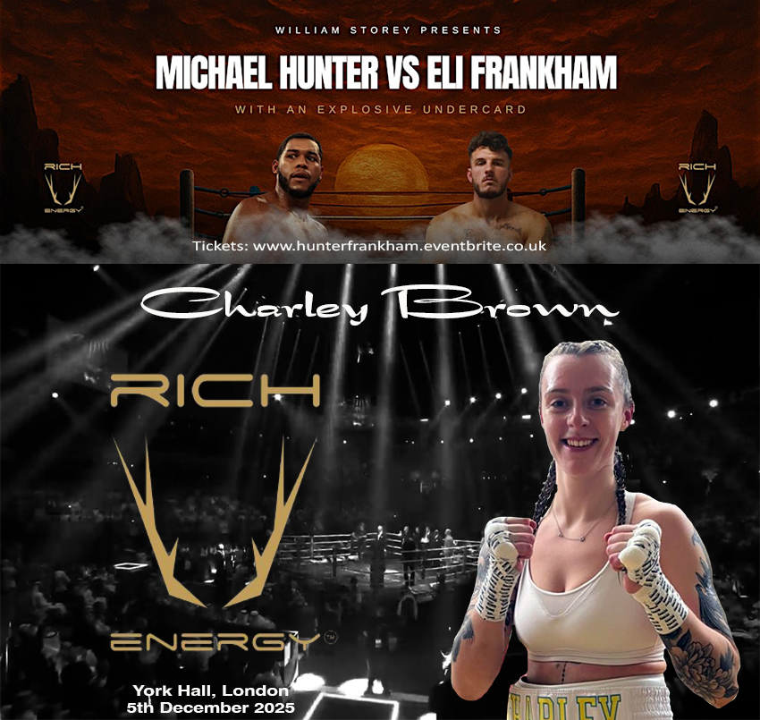 Rich Energy Head Honcho William Storey today announced that unbeaten Aberdeen Lightweight Prospect Charley Leigh Brown (4-0-0) has been added to the card of the highly anticipated Michael ‘Bounty’ Hunter versus Eli Frankham showdown, that takes place at the legendary York Hall in Bethnal Green, London on Friday the 5th December 2025.