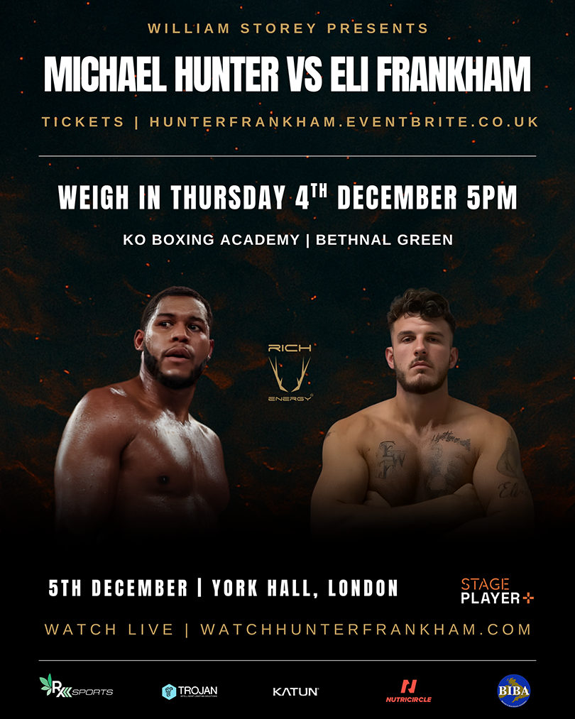 Hunter Vs Frankham – York Hall, London Today the 5th December 2025 The William Storey promoted Michael ‘the Bounty’ Hunter